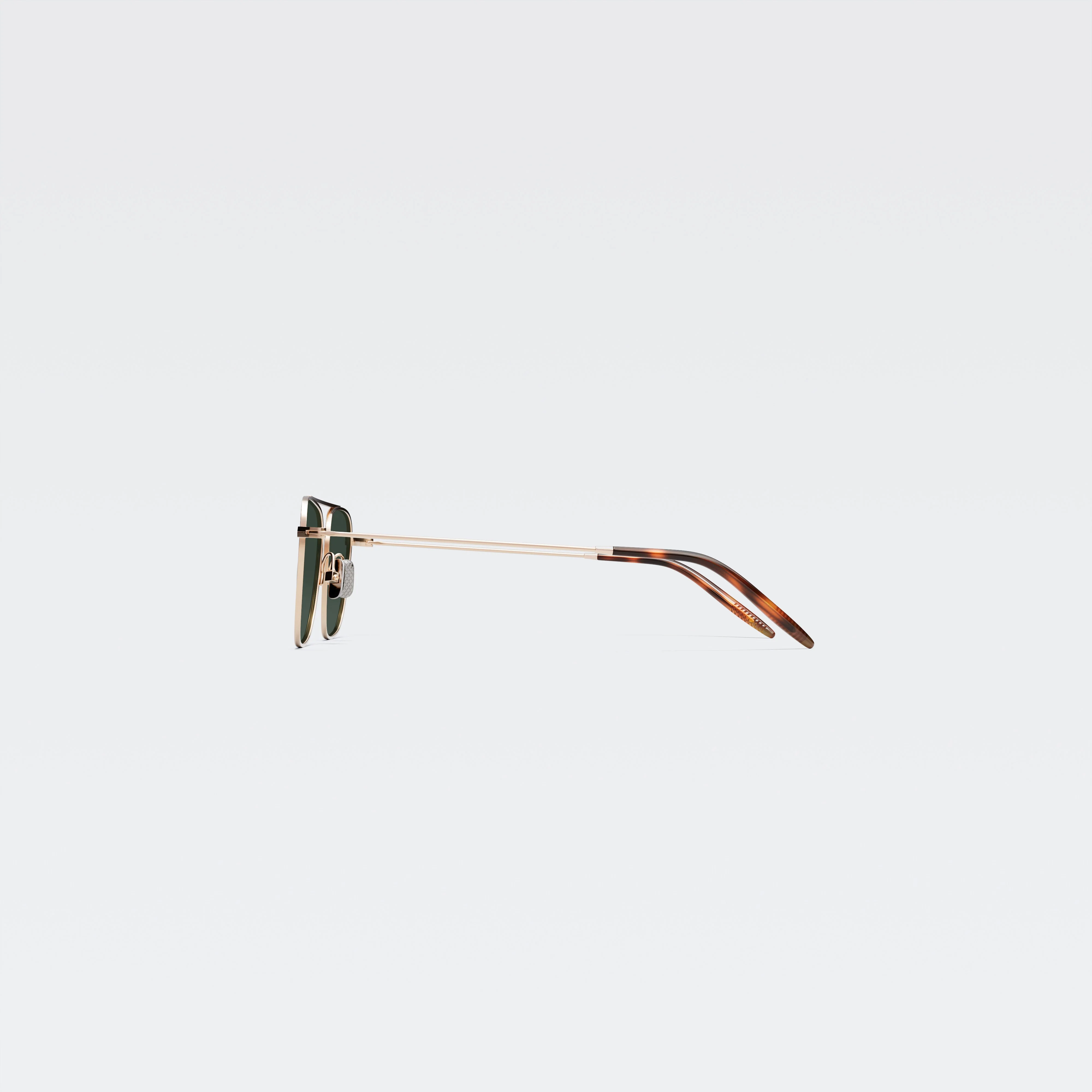 A modern ‘navigator’, descended from the silhouette developed in the 1960s to provide ample peripheral vision to fighter jet pilots, with a profile sleek enough to accommodate helmets and oxygen masks. An archetype of form following function in cool stainless steel, with sleek square lenses united by a single browline bridge, suspending the frame above the nose. Made of stern stuff (316L surgical grade stainless steel, to be precise).