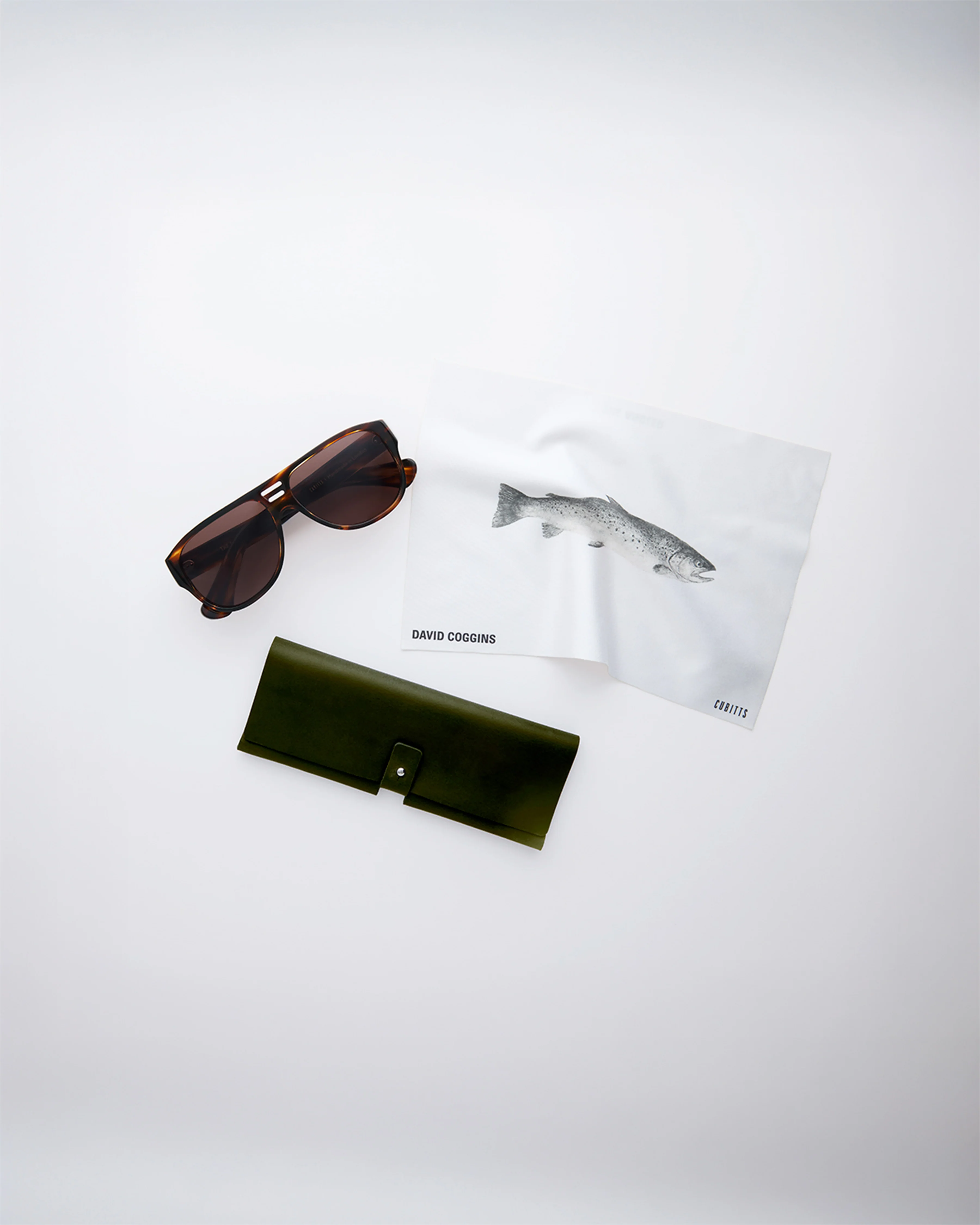 A 1970s-inspired aviator, created with writer and angler David Coggins. Its sweeping front and double bridge recall the pilot frames once worn on riverbanks, racetracks, and runways alike - an era when sport and style moved hand in hand. Bent lugs reduce light ingress, shielding the eyes from peripheral glare, while the larger lens design offers a broader field of view to track subtle movements in the water. The bridge detailing improves airflow, keeping the frame comfortable through long days outdoors. Paired with polarised lenses to cut through shimmer, it’s a frame shaped by the romance of the seventies: the glamour of aviators, the nostalgia of sport, and the enduring elegance of a life lived outside.